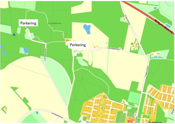 Der er gode parkeringsforhold ved Løvbakkerne. Både hvis du parkerer ved Naturcentret eller ved Dyrehaven.