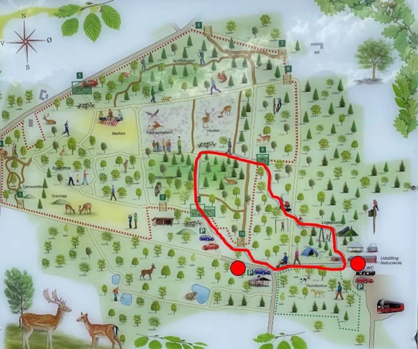 Du kan starte din tur på stien ved p-pladsen ved Dyrehaven eller ved Naturcentret.